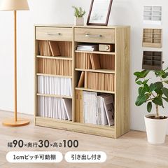 【幅 90cm】ブックラック 高さ調整可能 引き出し付き 本棚収納棚 マガジン 大判コミック A4