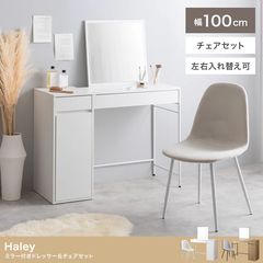 【送料無料】【2点セット】幅100cm ワイドミラー付き ドレッサー+チェア 椅子 イス デスク 机 引き出し 収納