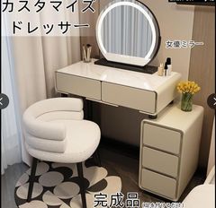 大好評☆ 80cm ドレッサー 北欧風 鏡台 おしゃれ 北欧 お姫系 LEDミラー ベロア調 レザー調オーダー可能 スツールセット 寝室 化粧テーブル コスメ台 収納 J108