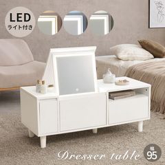 [幅95㎝] LEDライト付ロードレッサー ローテーブル センターテーブル コスメ収納 鏡台 8601