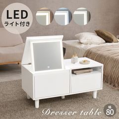 [幅80㎝] LEDライト付ロードレッサー ローテーブル センターテーブル コスメ収納 鏡台 8601
