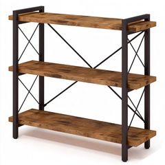 ラック おしゃれ 本棚 高さ90メートル スチールラック 幅90 収納ラック 木製 リビングラック オープンラック オープンラック キッチンラック 3段 簡単な組み立て 木目色 棚 (アンティークウッドカラー オープンシェルフ 幅90cm)