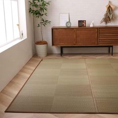 新品 イケヒコ い草 自然素材 ラグ カーペット 花ござ 裏張りなし 長方形 単品 ピーア グレー 約174×261cm 江戸間3畳 中国製 抗菌 防臭 ヒバ加工 汚れにくい 両面使える 洗濯不可 市松柄 和モダン アジアンテイスト シンプル おしゃれ #10