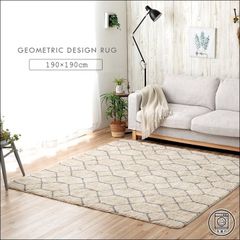 ふんわりラグ ポラロ 190×190cm カーペット ボリュームタイプ ウォッシャブル 幾何柄 洗濯機OK アイボリー 全国送料無料 [8961]