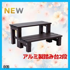 #342 踏み台 2段 ダークブラウン 屋外 ステップ 腰掛け お手入れ簡単 コンパクト 丈夫 安定性 頑丈 軽量 アルミ製 総重量5kg 耐荷重100kg ※一部地域離島別途配送料有