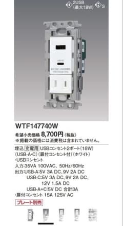 新品未使用 WN1485CW 埋込 充電用 USBコンセント 1ポート 2.4A