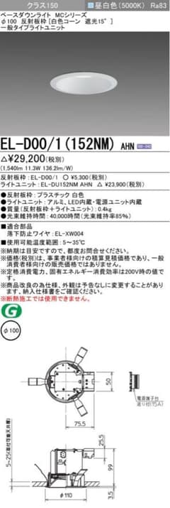 5セットLEDダウンライトΦ100 昼白色EL-D00/1(152NM)AHN