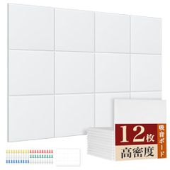吸音材 吸音ボード 30x30cm 厚さ12mm 12枚 高密度フェルト1800g/? 防音シート 壁 遮音材 インテリア 室内装飾 おしゃれ 部屋用 賃貸 剥がせる 騒音対策 楽器 吸音パネル ピアノ室 楽器練習室 録音室 オフィス(ホワイト)t