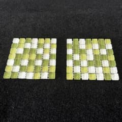 モザイクタイル ガラスブロック10cmx10cm 2枚セット(緑系3、スクエア)