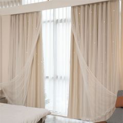 カーテン 姫系 遮光 レースカーテン付き 2枚組 丈100cm×幅100cm 一体型 二重 星柄 おしゃれ 厚手 フック付き タッセル付き 取付簡単 すぐ使える アジャスター付き 遮熱 保温 小窓/出窓用 掃き出し窓 腰窓 子供部屋 女の子 幼稚園 洗濯可能