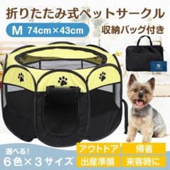 M イエロー 折りたたみ式 ペットサークル 収納バッグ付き 幅74cm