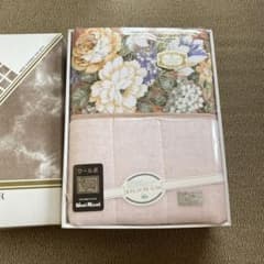 ウール混タオルケット 140x190cm ピンク 薄桃 花柄