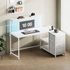 『在庫処分』 引き出しとコンセント付き 左右入れ替え対応 本棚付き コーナーデスク オフィスデスク モニタ台の高さ調節可能 勉強机 pcデスク 学習机 机 パソコンデスク ホームオフィス用 幅100.5cm 白い l字デスク