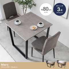モダン ダイニング 3点セット Marc 幅80cm ダイニングテーブル+チェア2脚 送料無料 スタイリッシュ デザイン ストーン柄 おしゃれ 食卓 机 デスク いす