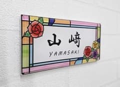 7色のステンドグラス背景アクリル表札*透明4辺45度斜めカット*UV印刷