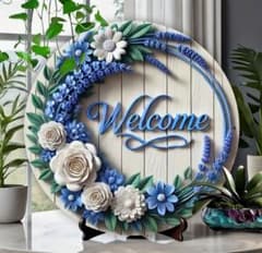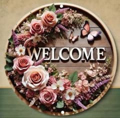 ウェルカムボード 花飾 玄関飾 アルミ 雑貨 インテリア 壁掛 花 壁飾 リース