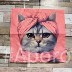 猫 ピンク ターバン スカーフ クッションカバー ねこ ネコ 座布団 猫グッズ