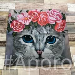 【新品未使用】クッションカバー インテリア 猫 ネコ アート 正方形