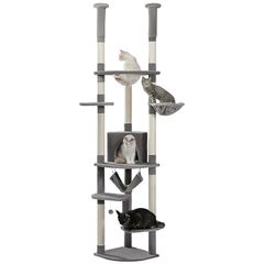 PETEPELA(ぺテぺラ) キャットタワー 突っ張り スリム ツッパリ 猫タワー 省スペース 透明 宇宙船ハンモック おもちゃ 麻紐 爪とぎ 運動不足解消 多頭飼い - グレー 高さ調整幅236-258cm 1