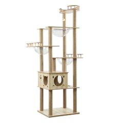 PAWZ Road キャットタワー 木製 大型猫スリム 宇宙船 180 猫タワー 据え置き 木目調 おしゃれ 多頭飼い 猫ベッド 猫ハウス 猫のおもちゃ 見晴台 クリアボウル 爪研ぎポール 滑り止めマット 階段 シニア猫 子猫 登りやすい 隠れ家 多機能 1