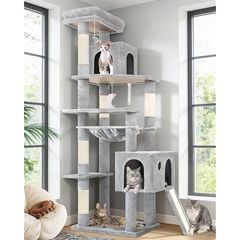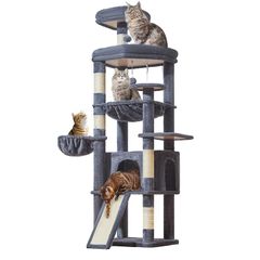 Taoqimiao 高さ約183cm キャットタワー 多段階高層猫タワー キャットタワー 大型猫用 広幅猫ハウス&大型スクラッチボード付き 爪研ぎポール5本 メタルハンモック 寝床バスケット MS045G ダークグレー 0