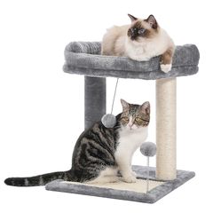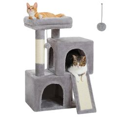 PAWZ Road キャットタワー ミニ 猫タワー 低い ケージ用ステップ 据え置き 爪研ぎ 爪とぎポール 小型 コンパクト 省スペース 猫のおもちゃ 頑丈 展望台 - 高さ45cm 1