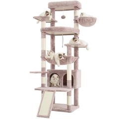 Heyblyキャットタワー 大型猫用 高さ202cm 複数猫飼育向け 高安定性 据え置き型キャットタワー 超大型扇形プラットフォーム 広々としたハンモック キャットハウス 登りやすい設計 多機能 運動不足解消 ローズブラウン HCT038MU 0