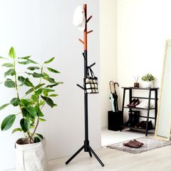 シンプル 日頃使うものを掛けておくのに便利 省スペース 洋服掛け 子供部屋 黒 玄関 収納 天然木製ポールハンガー コートハンガー 帽子 カバン ハンガーラック バッグ スリム ドウシシャ 幅44×奥行38×高さ173cm WPH-173BB