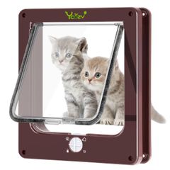 CEESC 4WAY ペットドア 小型 犬 猫 ペット出入り口 ドア 勝手口 扉 冷暖房対策 日本語取扱説明書付き (ブラウン, 小)pms