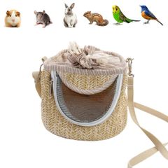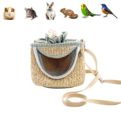 小動物 キャリー バッグ 草編みバッグ 肩掛け モモモンガポーチ ハムスターキャリアバッグ ハムスター、ウサギ、モルモット、リス、フェレットのポータブルバッグ 軽量 散歩 お出かけ ブラウン