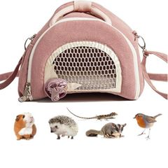 小動物 キャリー バッグ 柔らかい 肩掛け モモモンガポーチ ハムスターキャリアバッグ ハムスター、ウサギ、モルモット、リス、フェレットのポータブルバッグ 軽量 防寒 暖かい 散歩 お出かけ ピンク