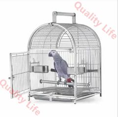 ステンレス鋼 鳥用キャリーかご 鳥小屋 携帯用小型オウム旅行ケージ ペットバードケージ 旅行鳥かご カナリア 鳥用キャリーかご バードケージ 鳥かご トレイ フードカップ2個 スタンディングスティック2本付き