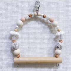 ことりのブランコかぎ編みリボン クリーム 文鳥 インコ おもちゃ 止まり木