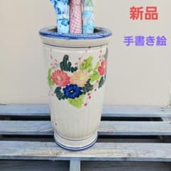 新品 陶器傘立て 手描き絵 浮かし模様 難有 花柄 地中海風 洋風 高級 3FC