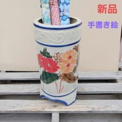 新品 陶器 傘立て 難有 手描き絵 花柄 手造り品 洋風 和風 高級33SFC1