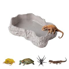 NyyGlykys 爬虫類 水入れ 餌入れ エサ皿 水飲み皿 自然の岩イメージ セメント素材 ひっくり返しにくい 安定性 爬虫類の食べ物と水皿 ペット 給餌板 爬虫類、両生類専用 陸亀 ゲトカゲ ヤドカリ ガエル ヤモリ オントカゲ 飼育ケース内装 (原色,
