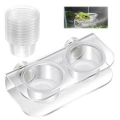 2セット 爬虫類 水入れ 爬虫類用給水器 クレステッドゲッコー 餌 両生類に適用可能 取り付けが簡単で 透明なデザインで 取り外して掃除できます (餌台x1 ボウルx10)