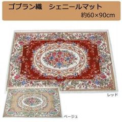 ゴブラン織 シェニールマット 玄関マット 約60×90cm レッド・YAN13860RE
