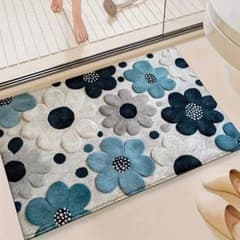 室内用マット 玄関マット バスマット お花柄 スベリ止め加工 ブルー×グレー ②