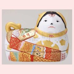 須はら 錦彩犬筥(大・左)/白 ※陶器,開運招福,縁起物,和,民芸品,工芸品,日本,レトロモダン,かわいい,可愛い,置物,いぬ,箱,筐,小物入れ,城,殿様,古来