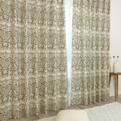 新品 【144サイズ】ウィリアム・モリス 国産防炎カーテン 2枚組【Scroll スクロール】P265 (約150cm幅×約170cm丈) 3級遮光 遮熱 断熱 目隠し 人気 多機能