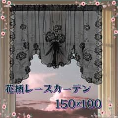 ブラック 花柄レースカーテン カフェカーテン 刺繍 150×100
