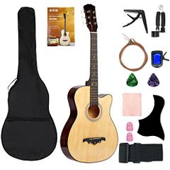 アコースティックギター 初心者セット 38インチ 学生 子供 大人 初級 入門練習 フォークギター クラシック 簡易教則(日本語)付き (ナチュラル セット, 38 インチ)t