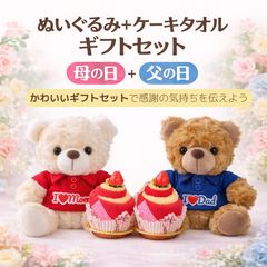 【母の日&父の日】テディベア+タオルケーキ 2点セット ラッピング済 両親へまとめて♪