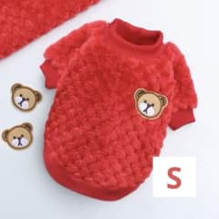 《S サイズ》フリース 犬 服 クマ刺繍 ペット服 秋 冬 防寒 レッド