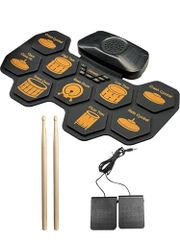 巻き取り式電子ドラム 9 パッド 10 曲デモ + 10 リズム 内蔵 3 種ドラムスタイル TYPE-C 給電でスマホ/パソコンと簡単接続 3w内蔵スピーカー リアルなドラムセットの手触りと音色を模擬可能 15 段階調整可ボリュームとテンポt