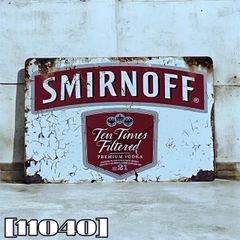 [11040]ブリキ看板 スミノフ SMIRNOFF ウォッカ VODKA イギリス ロシア アルコール お酒 蒸留酒 ビンテージ風 アンティーク風 ヴィンテージ風 インテリア 飾り 装飾品 レストラン 部屋 壁掛け ガレージ アメリカン雑貨 プレート