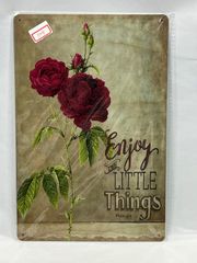A1104 アンティーク風 ブリキ看板 薔薇 ローズ 英字メッセージ レトロ インテリア 壁掛け