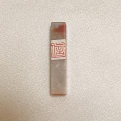 天然石 瑪瑙 篆刻 朱色スタンプ 「麻」 落款印 手彫り印