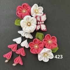 七五三 和柄リボン 髪飾り 赤 女の子 つまみ細工 和風小物 ヘアアクセサリー